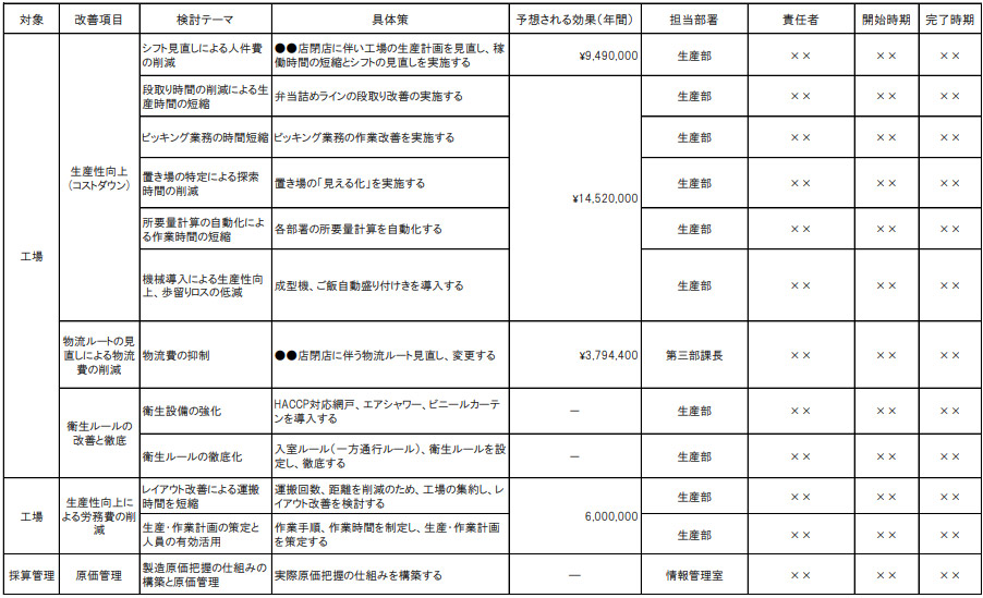 | 管理会計の高度化 | 管理会計制度の再構築支援 | 食品製造業 |